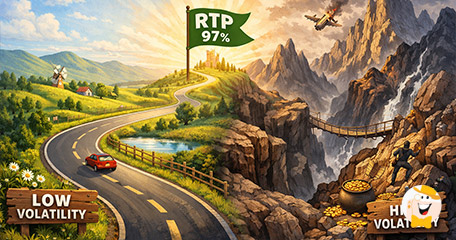 Think of RTP as the destination on a map. Volatility is the terrain you have to cross to get there. Low volatility is like driving down a hilly country road - you'll reach that theoretical return faster with fewer dramatic swings. High volatility means mountain ranges, canyons, and cliffs - you might never reach the theoretical return in your lifetime of play because the variance will either bust you out or pay you huge long before you get there.