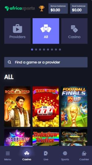 AfricaSports Casino is powered by a multitude of game makers and therefore features a massive and constantly expanding collection. The thousands of titles are designed to appeal to every player. The user experience is even better thanks to a good organization system: games are neatly divided into sections and can be easily filtered by category. Additionally, visitors can use a filter and find a specific game by its name or products by a certain software company. For instance, fans of NetEnt, Microgaming or any of the other available companies can quickly discover their games.