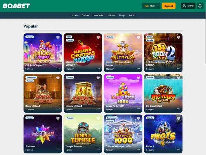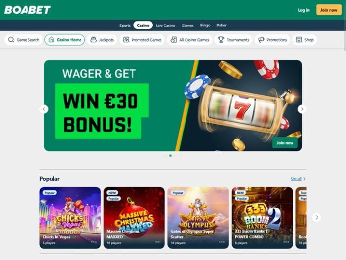 In Portuguese, the word boa means good, while in English, it's the name of a particular snake. Either way, Boa Bet online casino & sportsbook can proudly take both versions, as it appears to be a good gambling place and features a green color scheme, though no particular theme is evident.