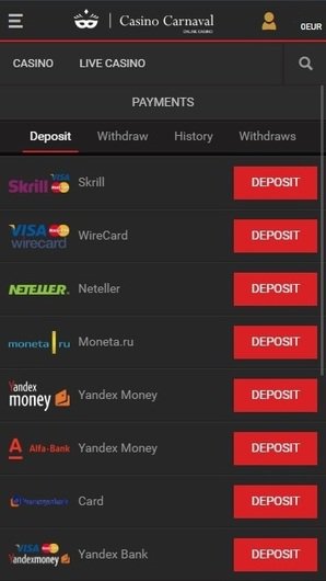 Carnaval has one of the largest platforms with an exceptionally diverse assortment of games. Though the promotional program is not too rich and lacks a VIP scheme, players can enjoy special tourneys with guaranteed rewards and frequent cash giveaways.