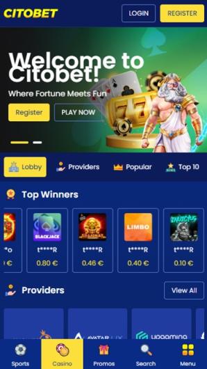 The design of Citobet Casino captures attention right off the bat, thanks to its vibrant color scheme set against a dark background. This choice makes every colorful element pop, creating an engaging casino platform that beckons players into its lively atmosphere. The website's structure deserves a nod for its clarity and user-friendliness. With a menu that's a breeze to navigate at the top of the page, players can effortlessly glide from one section to another, finding their preferred games or diving into different settings with minimal fuss.