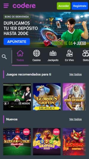 Created to primarily satisfy the needs of the Spanish players, Codere is a modern and visually stunning betting platform. The operator has joined forces with leading software providers and built a memorable portfolio for both casino and sports enthusiasts. Also, a set of top-notch promotions will make your playing sessions even more entertaining.