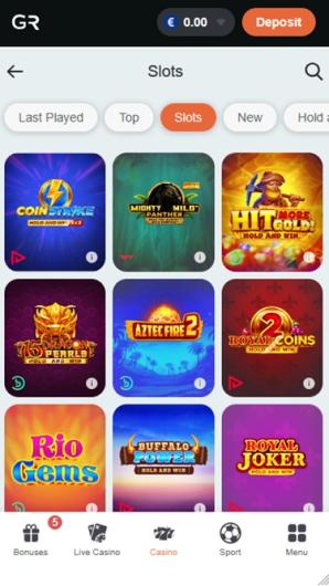 …including Playson, Quickspin, Evolution Gaming, Booongo, Habanero, iSoftBet, Nolimit City and more. Apart from a fine selection of suppliers, the casino also features multi=level filtering options.