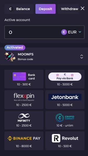 €5 (Crypto)/€10 (Other methods)