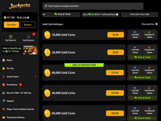 Jackpota is a social casino that operates on a dual-coin system, using Gold Coins (GC) as its in-house virtual currency and Sweeps Coins (SC) that can be accumulated and redeemed for prizes.