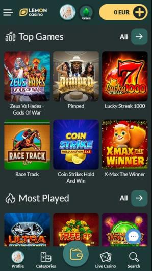 Lemon Casino comes with a fairly decent gaming portfolio consisting mostly of one – armed bandits and hand – picked selection of table games, which come powered by some of the well –recognized iGaming industry developers.