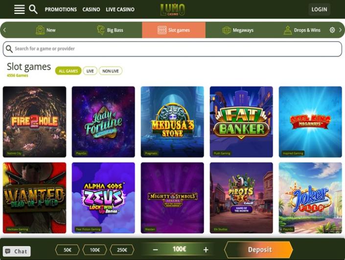 At Lumo Casino, you can dive into a vast selection of world-class casino games. Our range includes everything from thrilling jackpot slots to classic slot machines, table games, and engaging live dealer experiences.