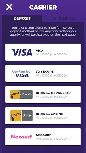 - min withdrawal: CAD$20