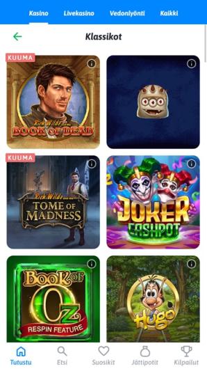 Partnered with Thunderkick, Betsoft, Gamomat and other reputable software vendors, the casino maintains a smooth gaming experience across all slots and table games. But it's not just about casino games here. Sports enthusiasts can keep up with their favorite hockey team, bet on Finland League and NHL matches, or dive into the action with classic soccer from the English and Spanish leagues, handball, tennis, and more. Live betting brings the excitement of real-time wagers right to your screen, completing an all-encompassing online betting experience that keeps you engaged and entertained.