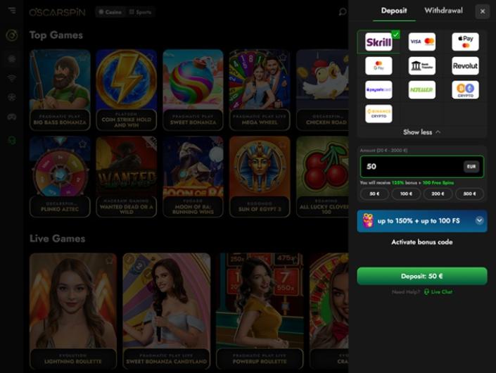 Oscarspin Casino is an online casino created by a group of experienced individuals whose main goal is to provide the best possible gaming experience for their customers. Starting from an extensive gaming library to a separate Sportsbook page and an abundance of fun features, it seems that this online site has it all.