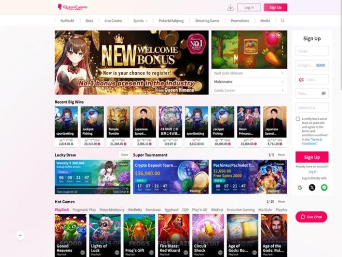 Catering to the specific needs of Asian players, the Queen Casino was established in 2015, and offers a choice of all content in Japanese, Chinese, Vietnamese, and English language.