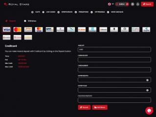 However! The website is extremely easy to use. Content is very well organized; the gaming arena has sub-categories that can help you in locating your favorite casino content. More, the convenient My Profile page shows the total history of your activities at this online casino. What we especially like, and which is very creative, is the News and Blog section where players can find a lot of useful information about online gambling. Personal tastes should not be discussed. The website is a bit boring for us -but it can be very funky for someone. What is certain is that Royal Stars is very easy to navigate, so the search for basic information will not give you a headache - everything you need is at the top of your fingertips.
