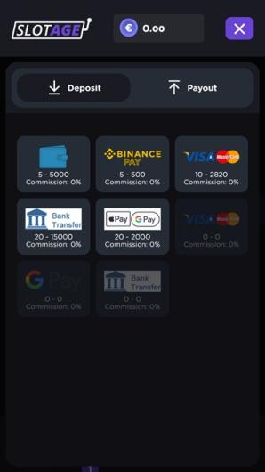 Placing deposits and receiving winnings is a very important aspect of gaming. It is vital that every individual finds a brand that has its preferred currencies and means of payment and engages in this entertainment form without worries. Slotage Casino accepts some of the major fiat currencies such as Euro, New Zealand Dollar and US Dollar. They can be used to make secure deposits and withdrawals with the casino but there are no crypto currencies available. As for the possible payment methods, there are several prominent cards such as Visa and MasterCard, bank wire transfers and virtual cards Apple Pay and Google Pay.