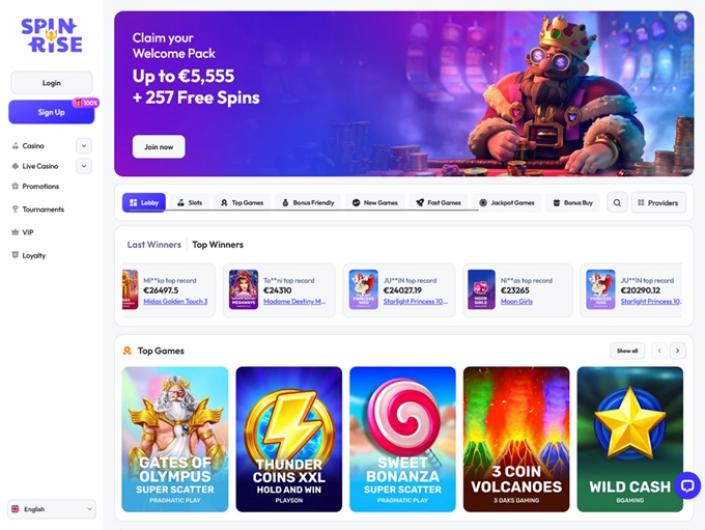 Capturing the attention with its fantastic portfolio of games, Spinrise Casino joined the online gaming sector bringing the most immersive slots, table games, jackpot games and live games. Collaborating with industry’s top providers such as 1spin4win, 3 Oaks Gaming, Felix Gaming, Platipus, Popiplay and others, it secures continuous influx of amazing adventures.
