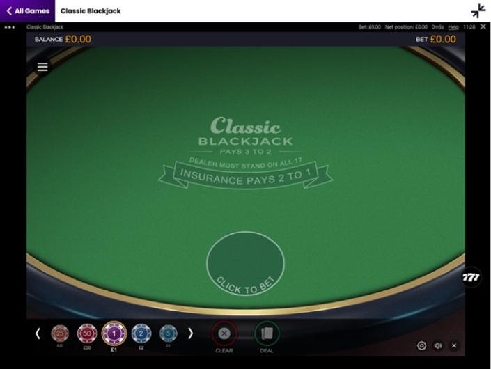Table Games: 10p Roulette, European Roulette, Low Stakes Roulette, Diamond Rush Roulette, 9 Pots of Gold Roulette, Auto Roulette, Classic Blackjack, Classic Blackjack Side Bet Suite, Atlantic City Blackjack Multi Hand, Vegas Single Deck Blackjack, and more.