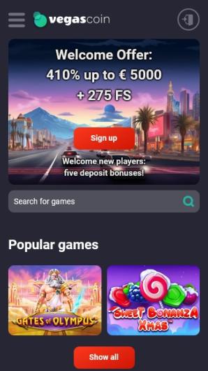 VegasCoin is a modernly designed gambling website that is available in a variety of languages, including English, Spanish, Italian, and German and is fully compatible with any smartphone or tablet. The site's functioning is unaffected by whether you use an Android or an iOS mobile device.