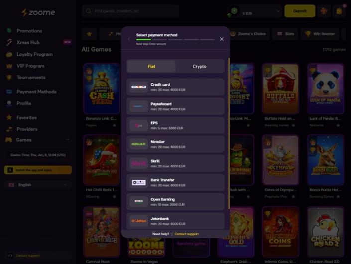Zoome Casino doesn’t offer a mobile app, but when you think about it- you don’t even need an app. The platform functions beautifully when opened directly from a mobile web browser. We take our jobs very seriously, so we did a test run for you: we opened Zoome Casino on an Apple device, played a couple of games, contacted the live-support service, scrolled around the pages… and you know what? We don’t have the tiniest complaint about how this casino works in mobile mode!