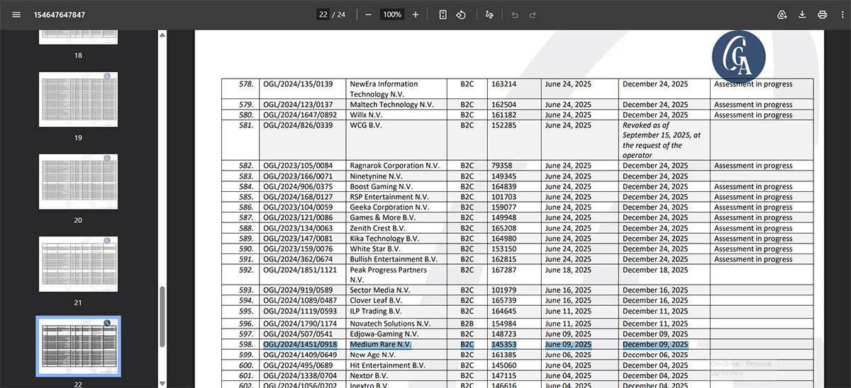 “Long Island N.V. has an application (OGL/2024/1451/0918) for a gaming license in progress with the Curaçao Gaming Authority. Until that process is concluded, based on a transitional arrangement outlined in the National Ordinance on Games of Chance (Landsverordening op de Kansspelen, P.B. 2024, no. 157), the company is permitted to continue its operations under this Certificate of Operation.”