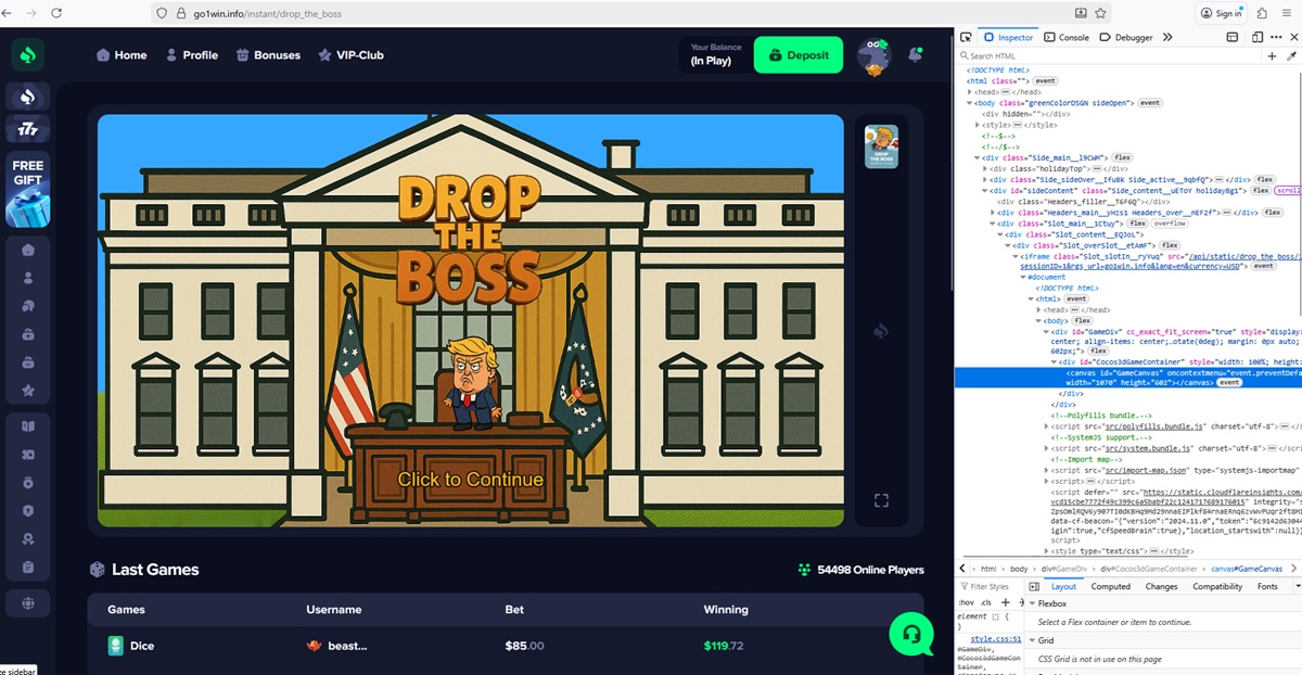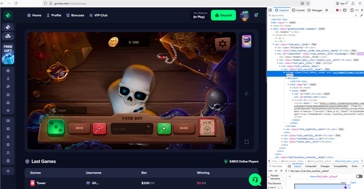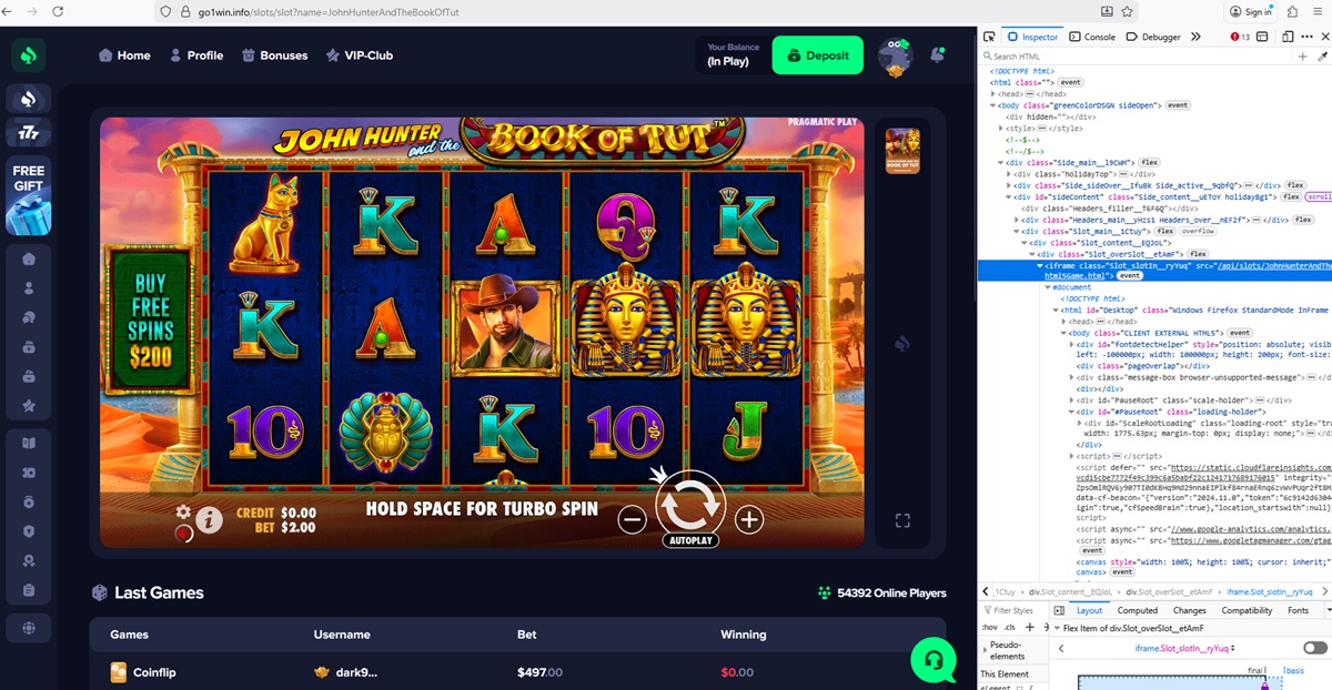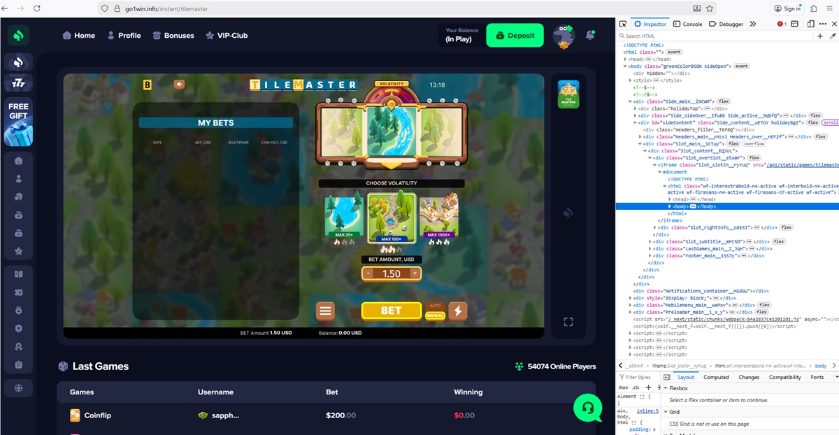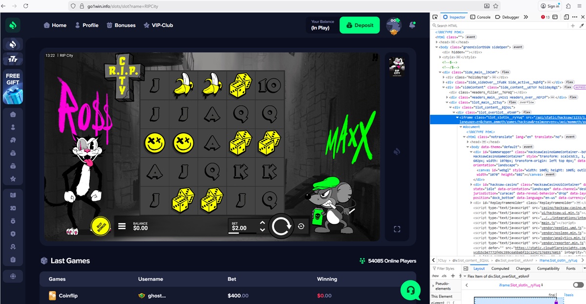 We also confirmed that go1win.info uses fake or unauthorized casino games. The platform displays titles branded as coming from providers such as 1Win, Hacksaw Gaming, BGaming, Pragmatic Play, Evoplay, and Mirror Image Gaming. Technical checks revealed manipulated JavaScript files, mismatched game sources, and no connection to official provider servers.
