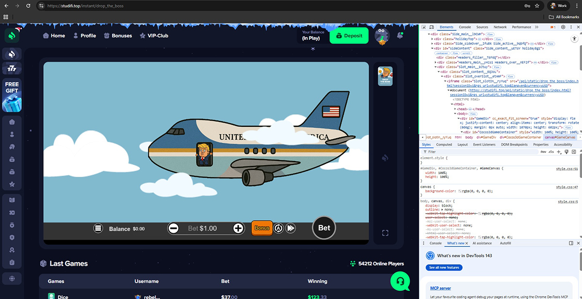 Another serious issue is the use of fake and unauthorized games. While the site presents games branded as coming from well-known providers, technical analysis shows that these games are not hosted on official provider servers and have been manipulated at the source level. This means players have no guarantee of fair play or legitimate outcomes.
