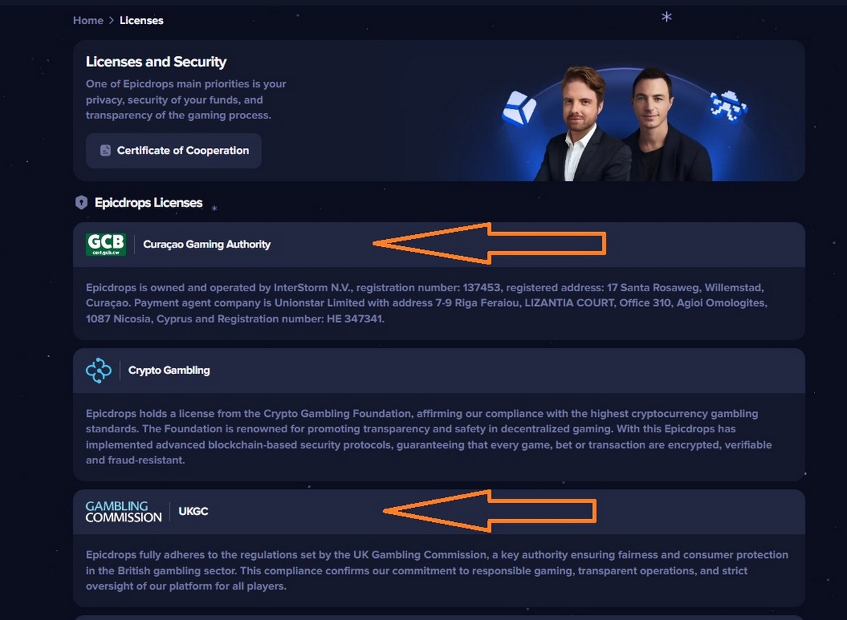 One of the most alarming issues uncovered during our review involves the casino’s licensing claims. Throughout its website, Epicdrops.digital displays badges, documents, and text suggesting it is regulated by both the Curaçao Gaming Authority and the UK Gambling Commission. These claims do not withstand verification.