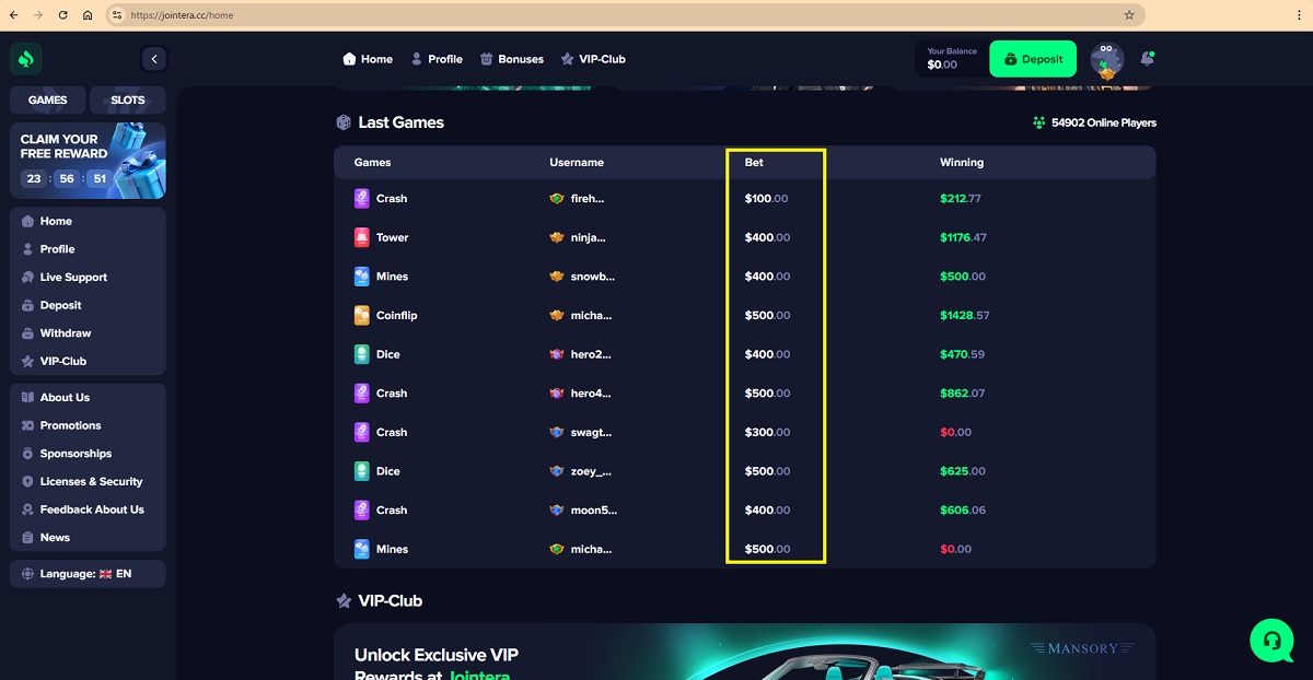 Our conclusion is clear. Depositing money at jointera.cc carries a high risk, and players should avoid this casino entirely. Gamble responsibly!