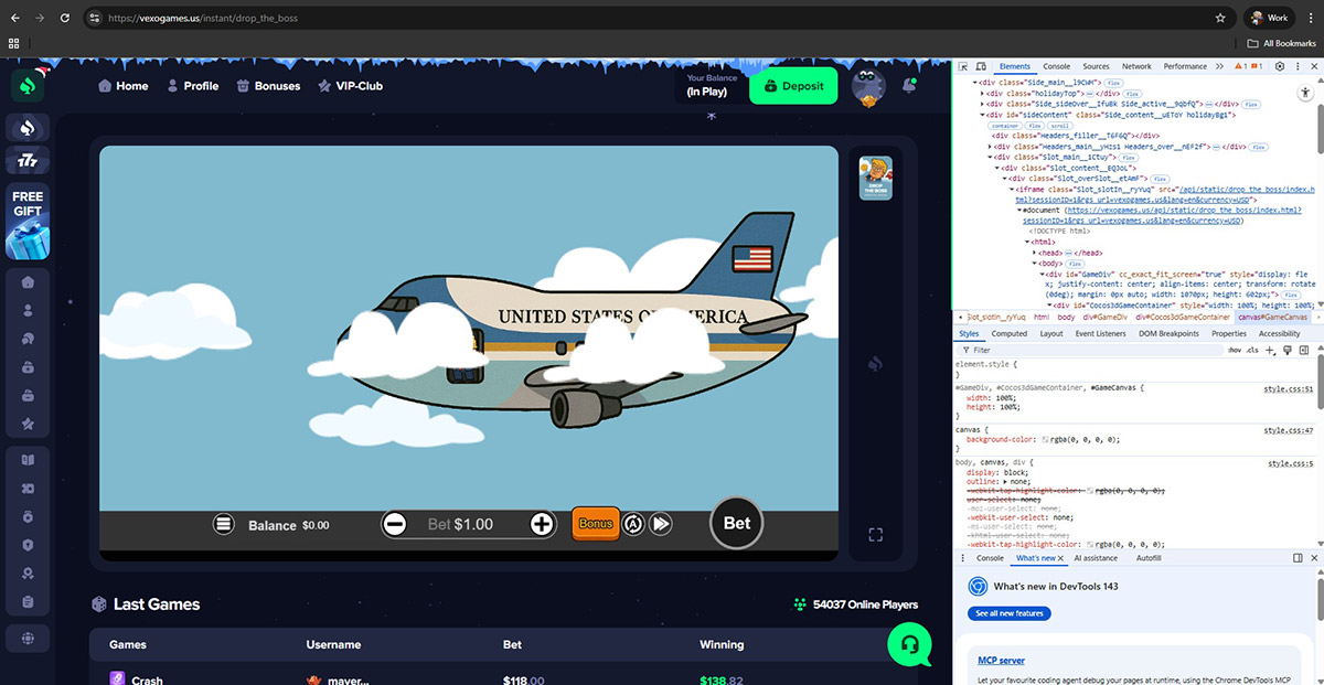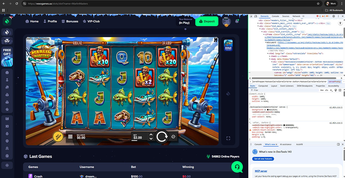 We confirmed that Vexogames.us hosts fake or unauthorized casino games. Titles listed under well-known software providers were not connected to official provider servers and showed clear technical irregularities.