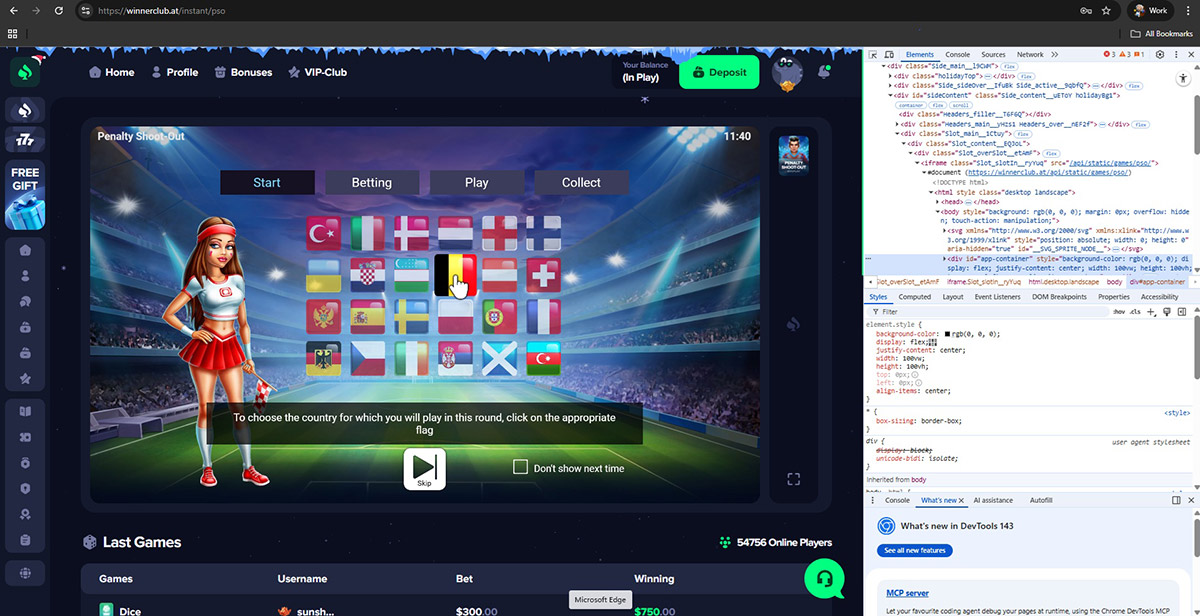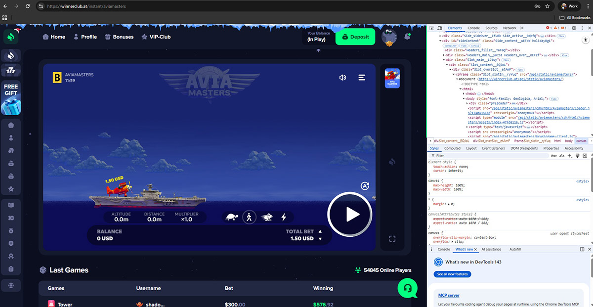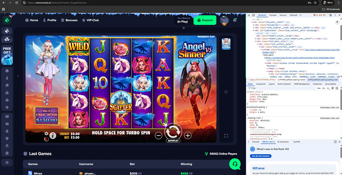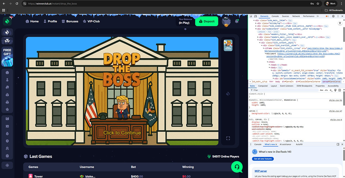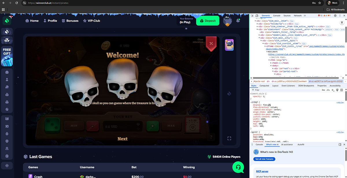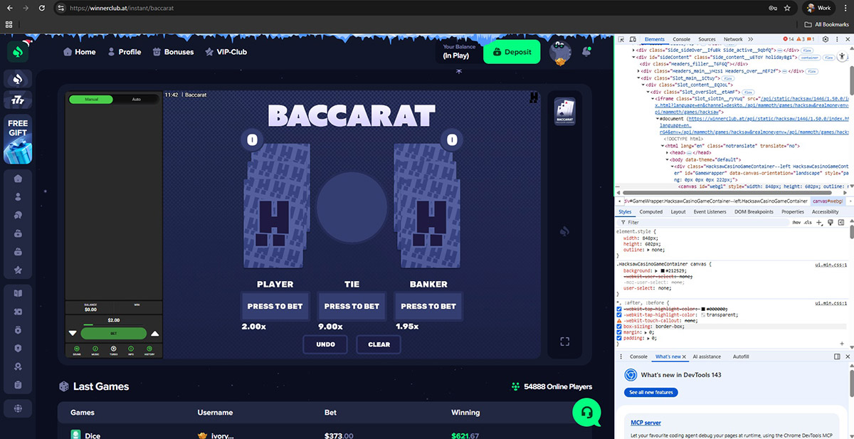 None of these providers officially supply games to Winnerclub.at. Instead, the casino runs altered game files hosted on its own infrastructure. Evidence includes modified JavaScript code, mismatched game sources, and the complete absence of official provider servers.