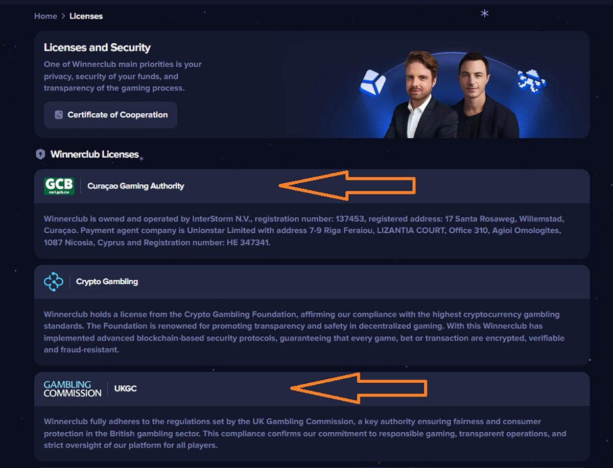 One of the most serious concerns is the casino’s false regulatory claims. Winnerclub.at openly presents itself as licensed by the Curaçao Gaming Authority and the UK Gambling Commission. However, our verification confirmed that neither claim is legitimate.