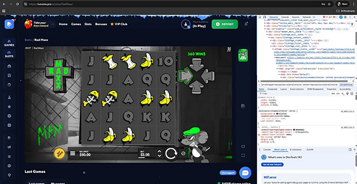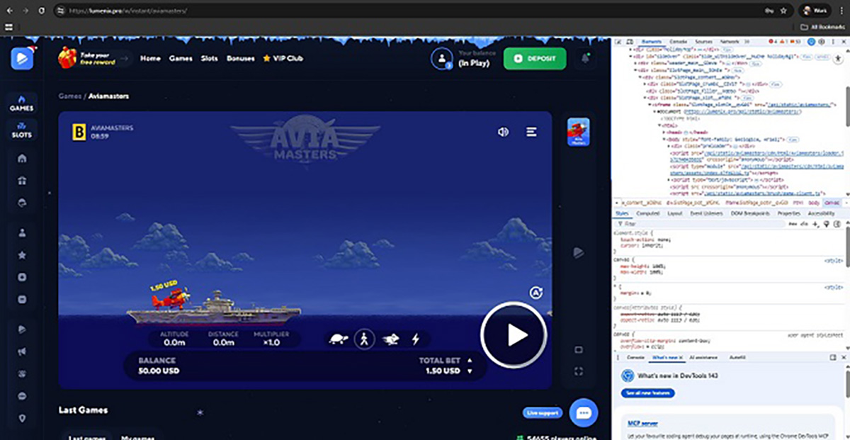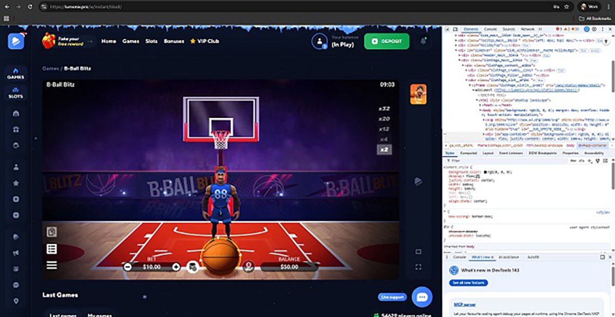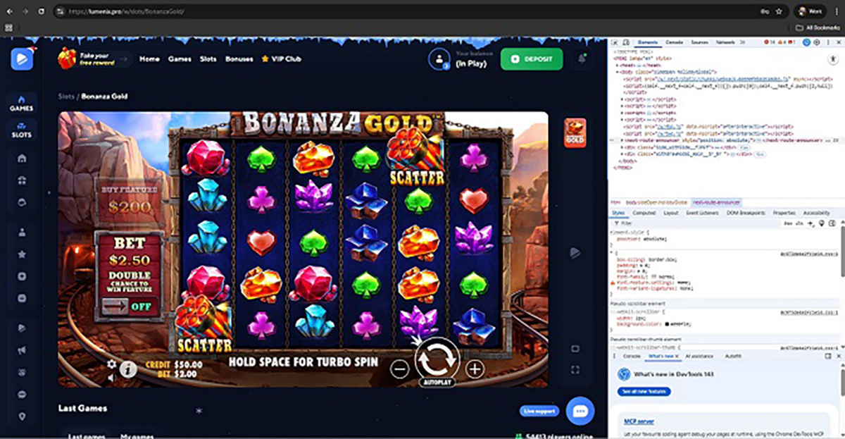 One of the most serious findings involves the casino’s games. Our technical checks confirmed that Lumenix.pro uses fake or unauthorized versions of titles associated with well-known providers, including Pragmatic Play, Hacksaw Gaming, BGaming, Evoplay, and 1Win.
