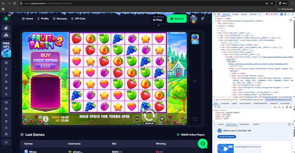 We also reviewed the games offered on spintrex.world. Our technical analysis confirmed that the casino uses fake or unauthorized versions of titles claimed to be from renowned game suppliers, including 1Win, Pragmatic Play, Evoplay, Hacksaw Gaming, BGaming,and Mirror Image Gaming.