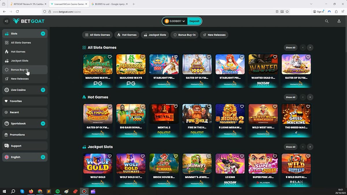 BETGOAT Casino Gameplay