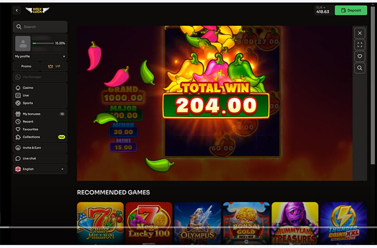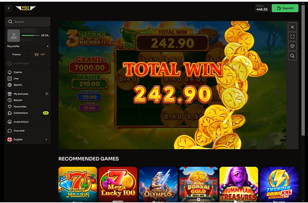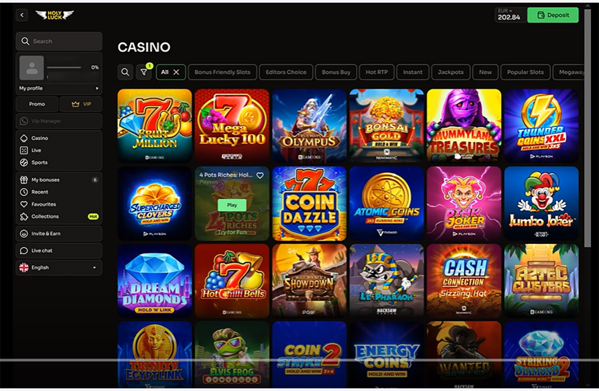 Featuring big bonuses, lots of games, and modern payment options, Holyluck Casino captures the attention of all profiles of visitors.
