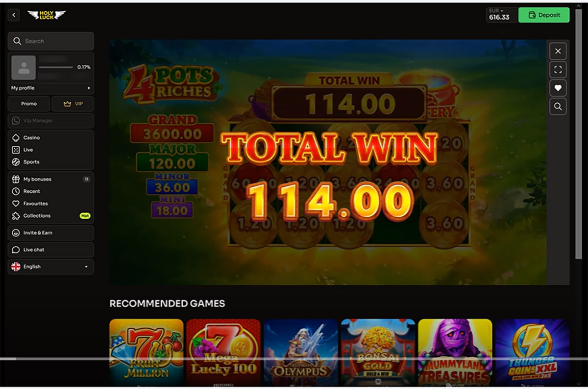 Overall, the Holyluck Casino test went smoothly and delivered solid results. From a quick registration and seamless crypto deposit to an action-packed gaming session with plenty of notable wins, the experience was largely positive.