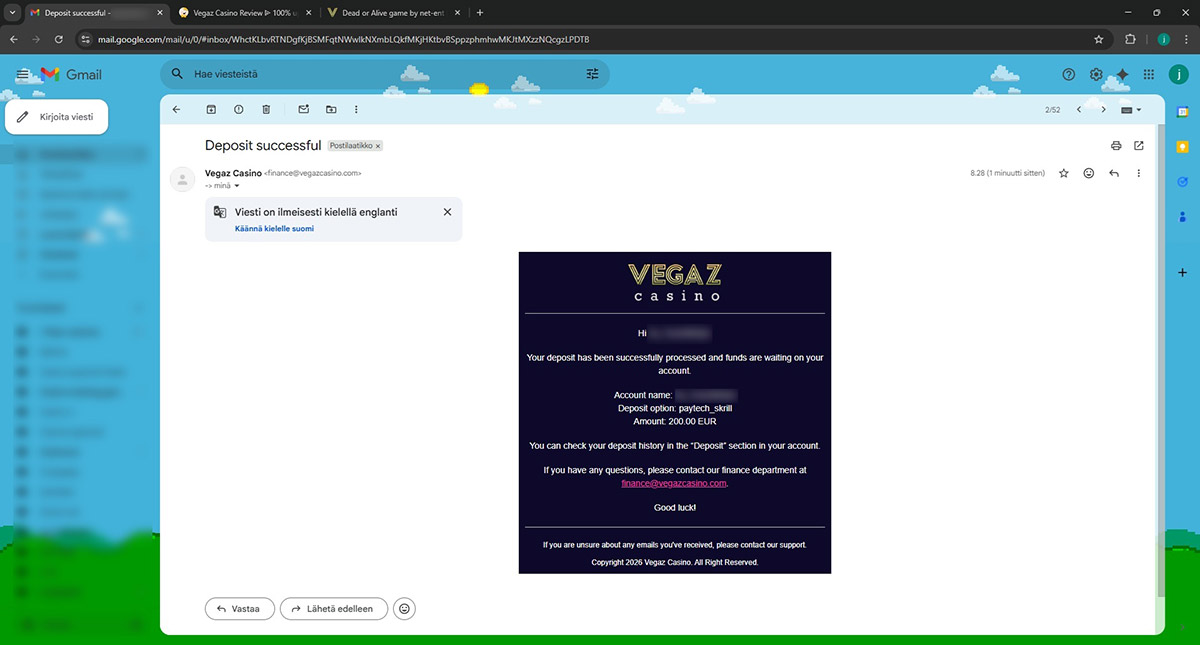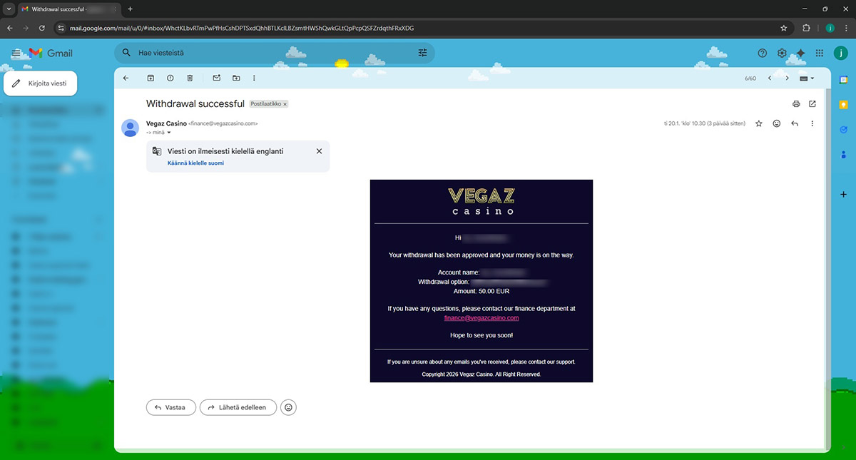 Two days later, the tester received an email from the casino stating that his withdrawal was approved and that his money is on the way.