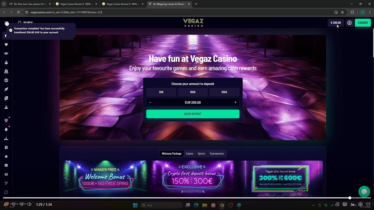 All said and done, despite not having the most luck with his spins, tester had a decent experience with Vegaz casino. However, he did run into some hiccups as well.