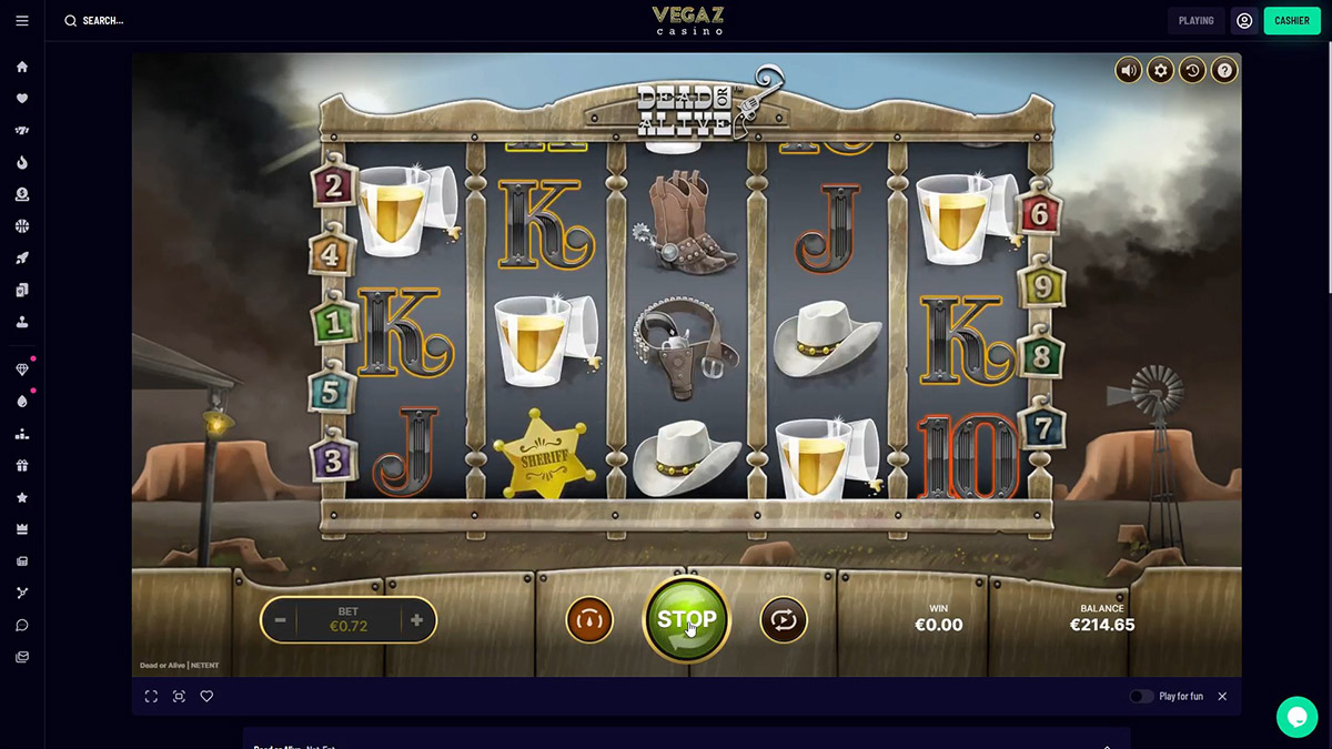With his deposit ready for use, it was time for our tester to start exploring the casino’s lengthy portfolio by taking some slots for a few spins. First up was Dead or Alive by NetEnt, which led the tester to a few quick wins, further boosting his account balance.