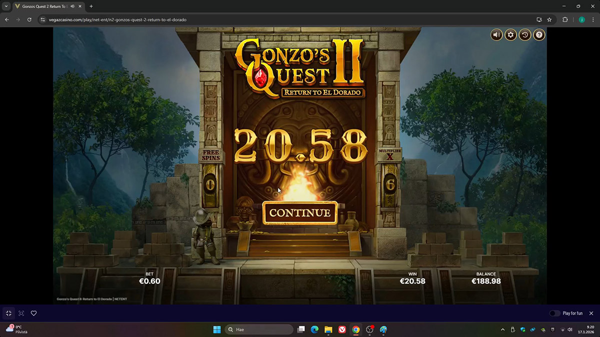 That’s when our tester decided to take a barrage of different slots for a spin, hoping for the similar outcome, however, he managed to score no significant wins. He then booted up Gonzo’s Quest II: Return to El Dorado, where he scored a solid win of €20.58.