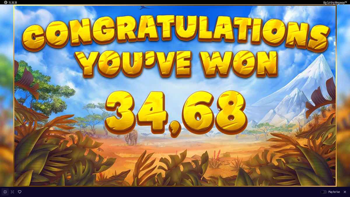 Another barrage of slots, another batch of spins leading to no significant wins. However, checking out Big Cat King Megaways led him to the free spins feature, and, more importantly, a whopping total free spins win of €34.68.