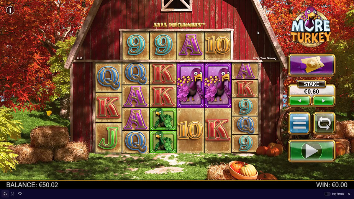 After yet another unfortunate streak of losses, the tester decided to check out More Turkey by Big Time Gaming before deciding to bring his playthrough to an end.