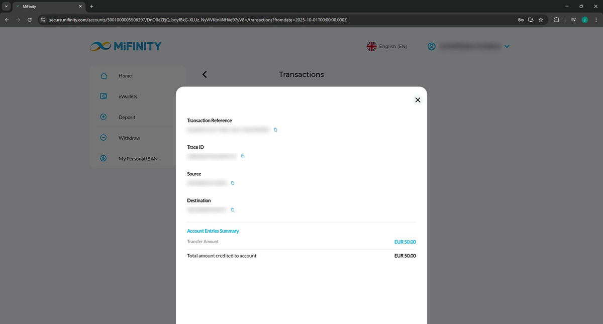 - Withdrawal of €50 requested on January 18, 2026 via Mifinity